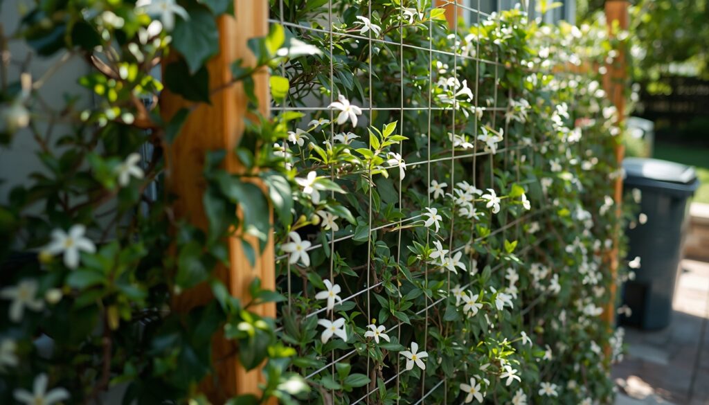 • Tools & Materials: Shovel, hammer, 4×4 posts, and fast-growing climbing plants like Clematis or Star Jasmine.